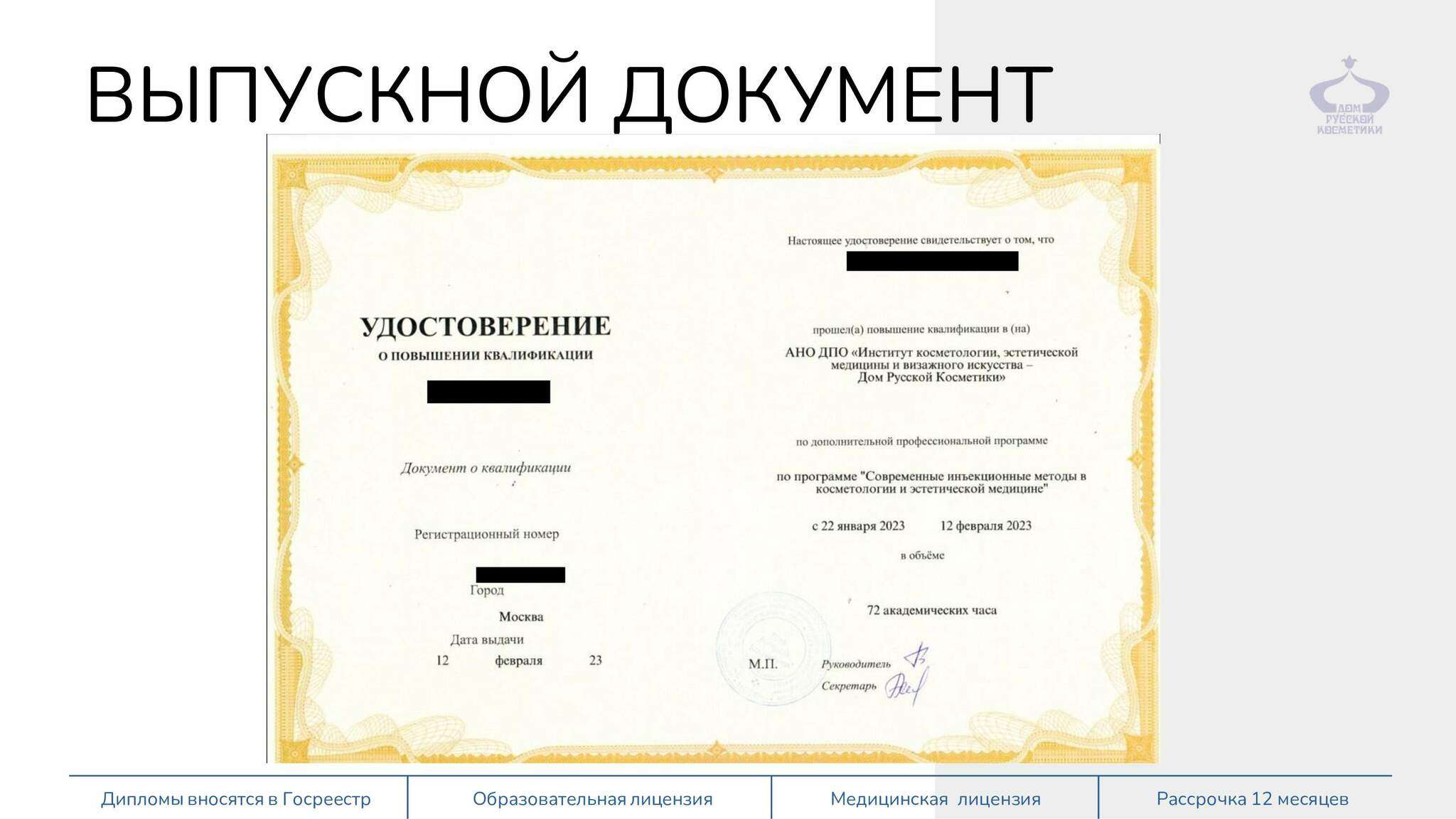 В этом случае вы можете проходить обучение в Доме Русской Косметики до окончания нострификации документов, но наши выпускные документы вы получите только после предоставления нострифицированных документов об образовании.