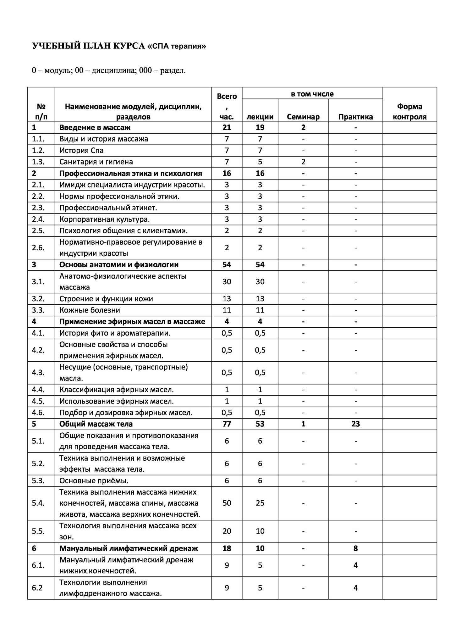 Уникальный курс, который позволяет освоить техники массажа, скрабирований, обертываний и спа-уходов полностью дистанционно. Обучение состоит из двух частей: самостоятельное изучение материалов на нашей платформе, дистанционного обучения, онлайн-уроки с нашими педагогами, во время которых они ставят ученикам руку и вместе с ним отрабатывают навыки.