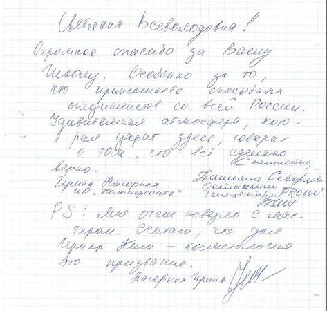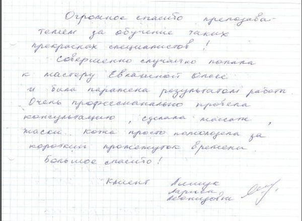 Спасибо огромное Дому Русской косметики за знания, кот. они дают. Такого нет нигде!!! Особая благодарность Свет.Анат. Овчинниковой — она огромная умница! И еще спасибо за теплое внимание и прием. После такого обучения хочется совершенствоваться и дальше! Спасибо! Здоровья Вам и процветания! С уважением, Итальянцева С.