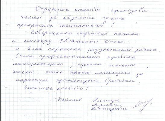 Огромное спасибо преподавателям за обучение таких прекрасных специалистов! Совершенно случайно попала к мастеру Евлагиной Ольге и была поражена результатом работы. Очень профессионально провела консультацию, сделала массаж, маски. Кожа просто помолодела за короткий промежуток времени. Большое спасибо!