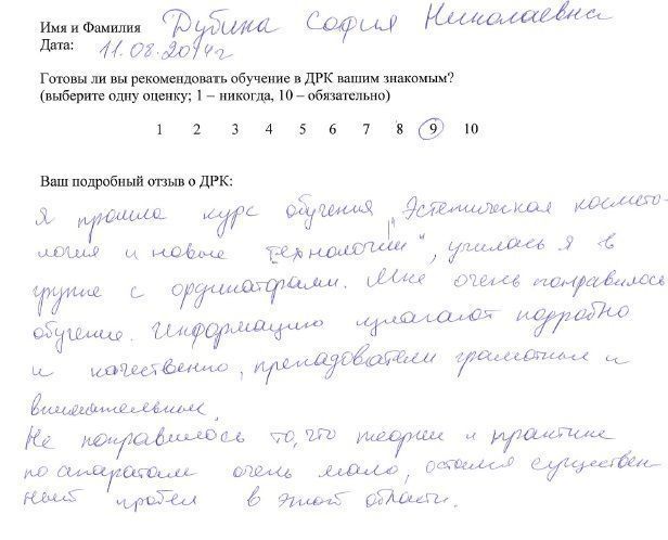 Я прошла курс обучения «Эстетическая косметология и новые технологии», училась я в группе с ординаторами. Мне очень понравилось обучение. Информацию излагают подробно и качественно, преподаватели грамотные и внимательные. Не понравилось то, что теории и практики по аппаратам очень мало, остался существенный пробел в этой области.