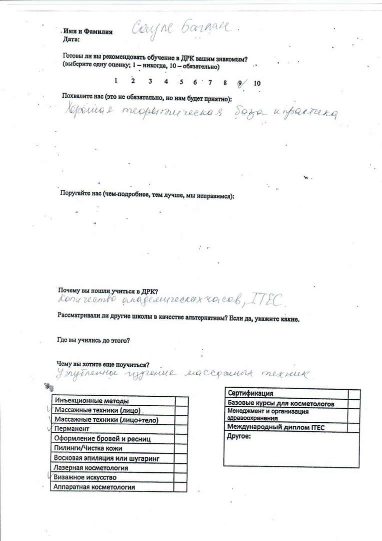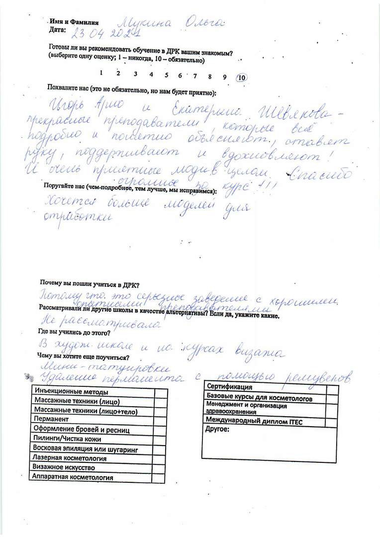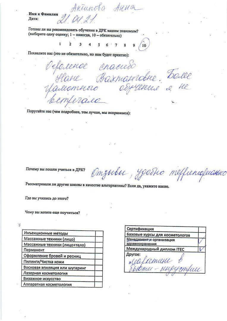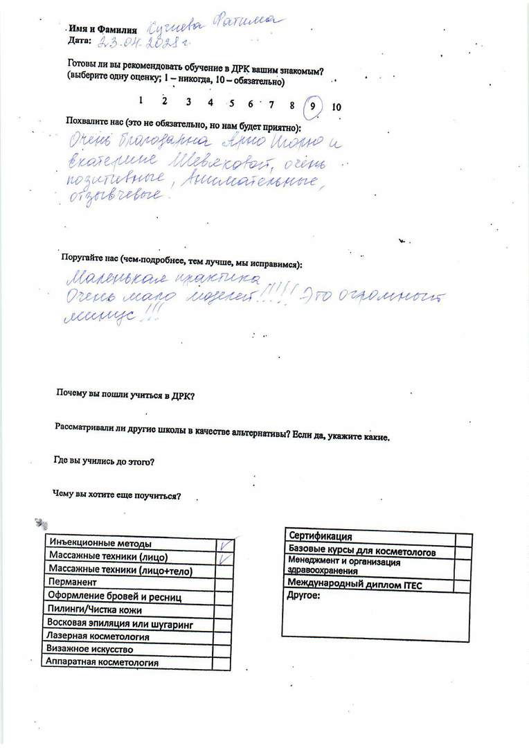 Ранее прошла профессиональную переподготовку в ДРК по компетенции Косметик-Эстетист. До этого слышала об уровне обучения и месте хвалебные отзывы.