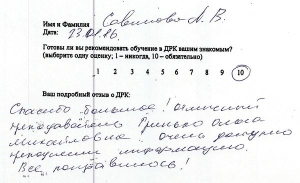 Спасибо большое! Отличный преподаватель Гринько Ольга Михайловна! Очень доступно преподнесли информацию. Все понравилось!