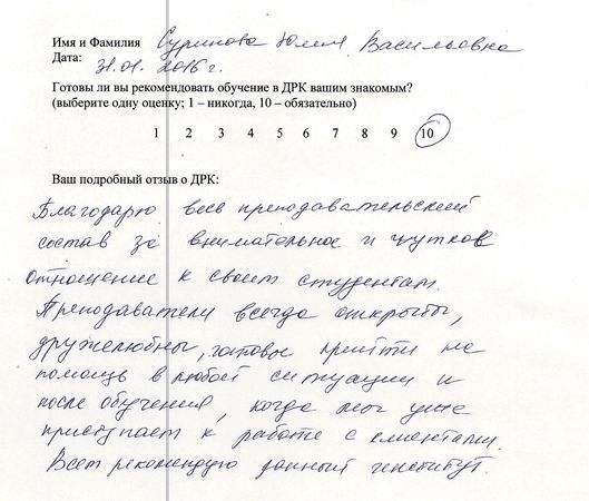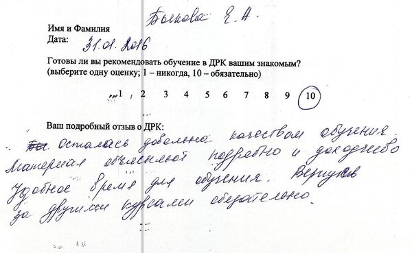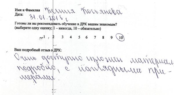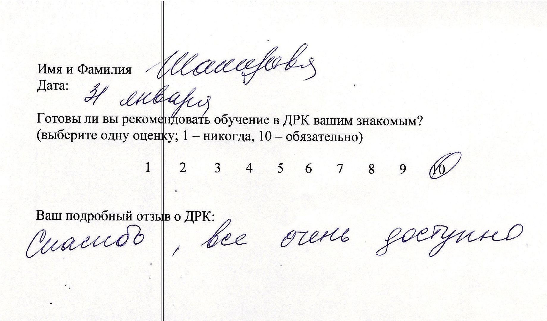 Я довольна обучением в ДРК. Материал преподается в доступной форме, тщательно
