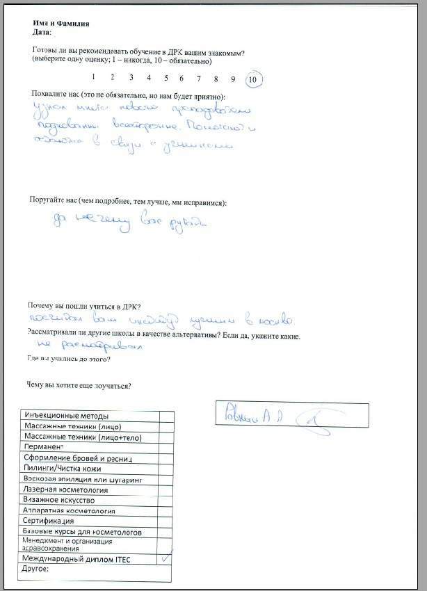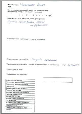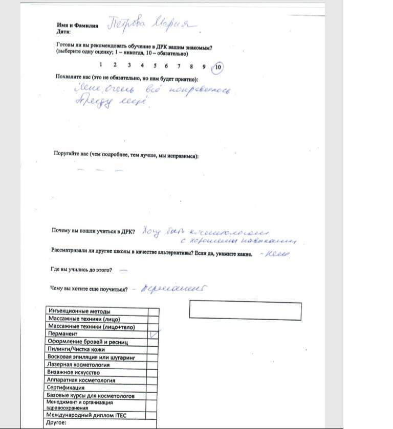 Мне очень все понравилось! Приду еще обязательно к вам – хочу быть косметологом с хорошими навыками. На очереди – перманент