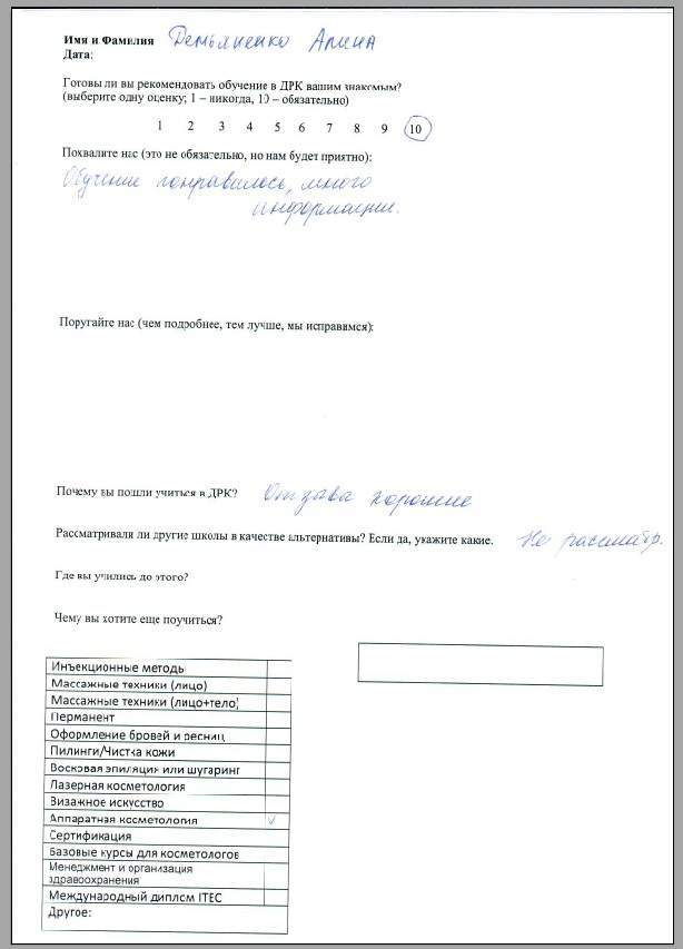 Обучение понравилось, много информации. Пошла учиться в ДРК, потому что отзывы хорошие