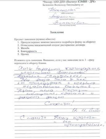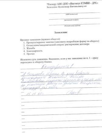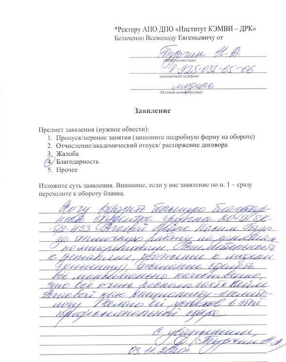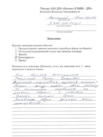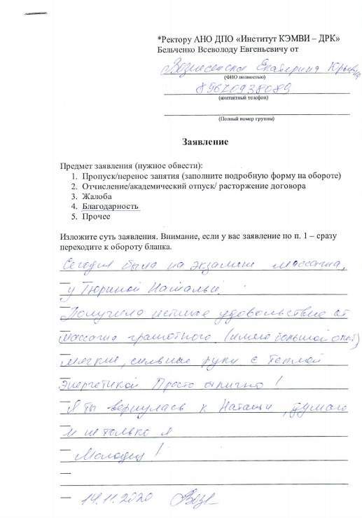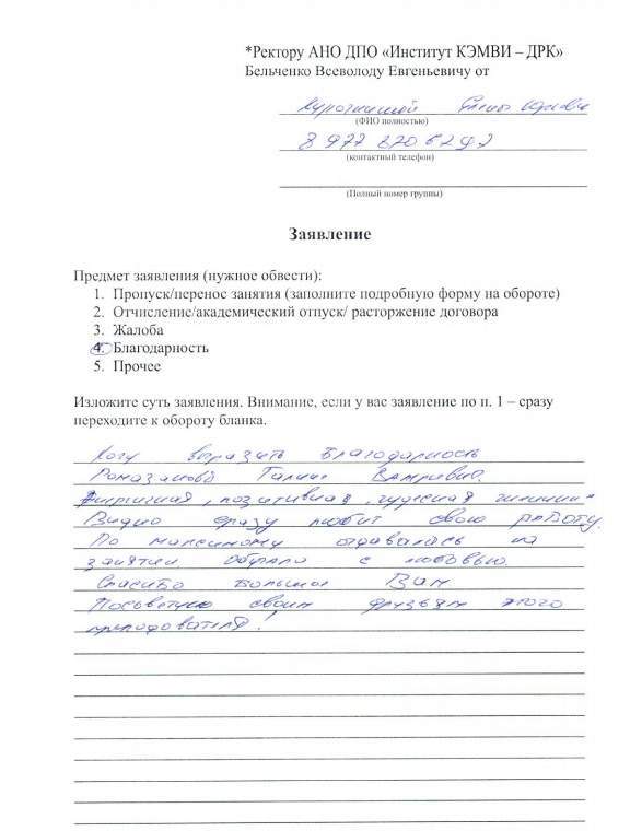 Я Рослякова Ирина В. хочу выразить благодарность Мелиховой Наталье Вячеславовне, студентке группы 20-9-ТНЕ 2/5-10(2) за отличную работу на занятии Аппаратные процедуры для лица.