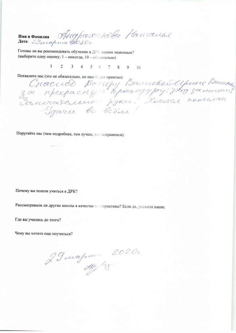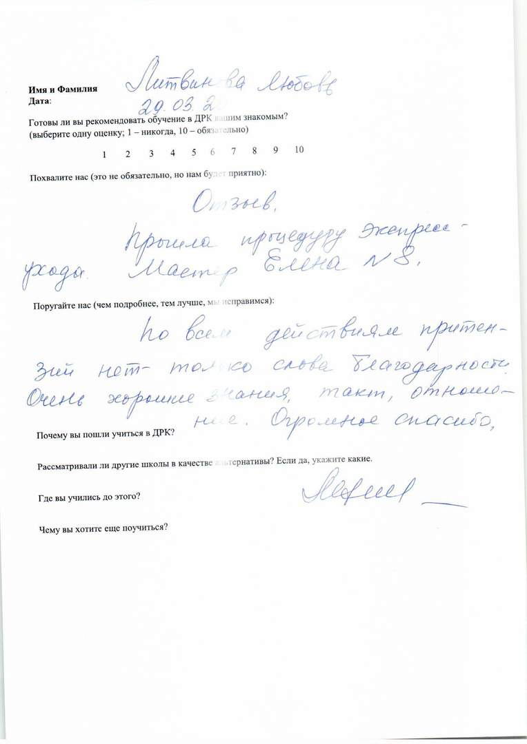 Я была моделью на экзамене, ученица Манёшина Елена. Все очень понравилось, все процедуры сделаны тщательно. Нет замечаний.