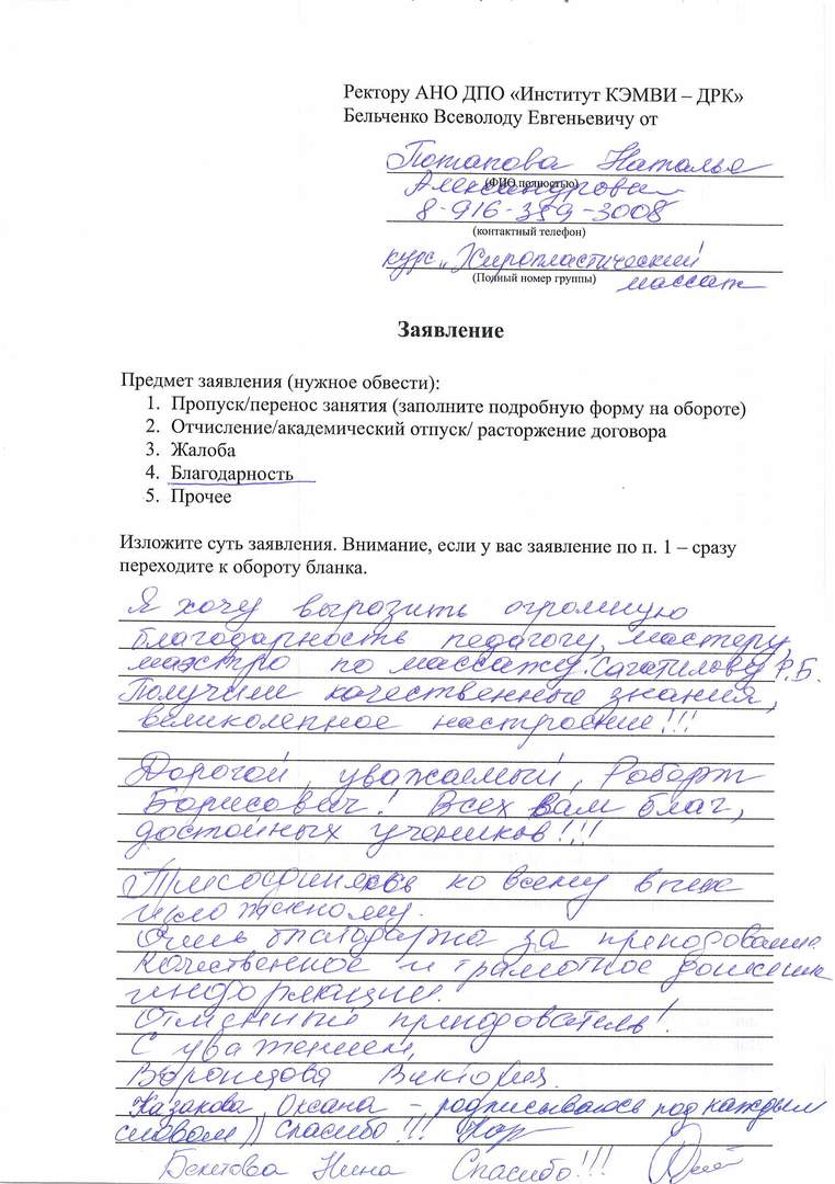 Я хочу выразить огромную благодарность педагогу , мастеру, маэстро по массажу Сагателову Р. Б. Получили качественные знания, великолепное настроение!! Дорогой, уважаемый Роберт Борисович! Всех вам благ, достойных учеников. Присоединяюсь ко всему вышеизложенному. Очень благодарная за преподавание, качественное и грамотное донесение информации. Отменный преподаватель.. Подписываюсь под каждым словом. Спасибо!