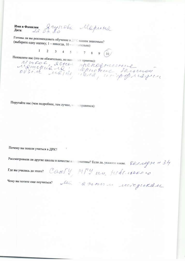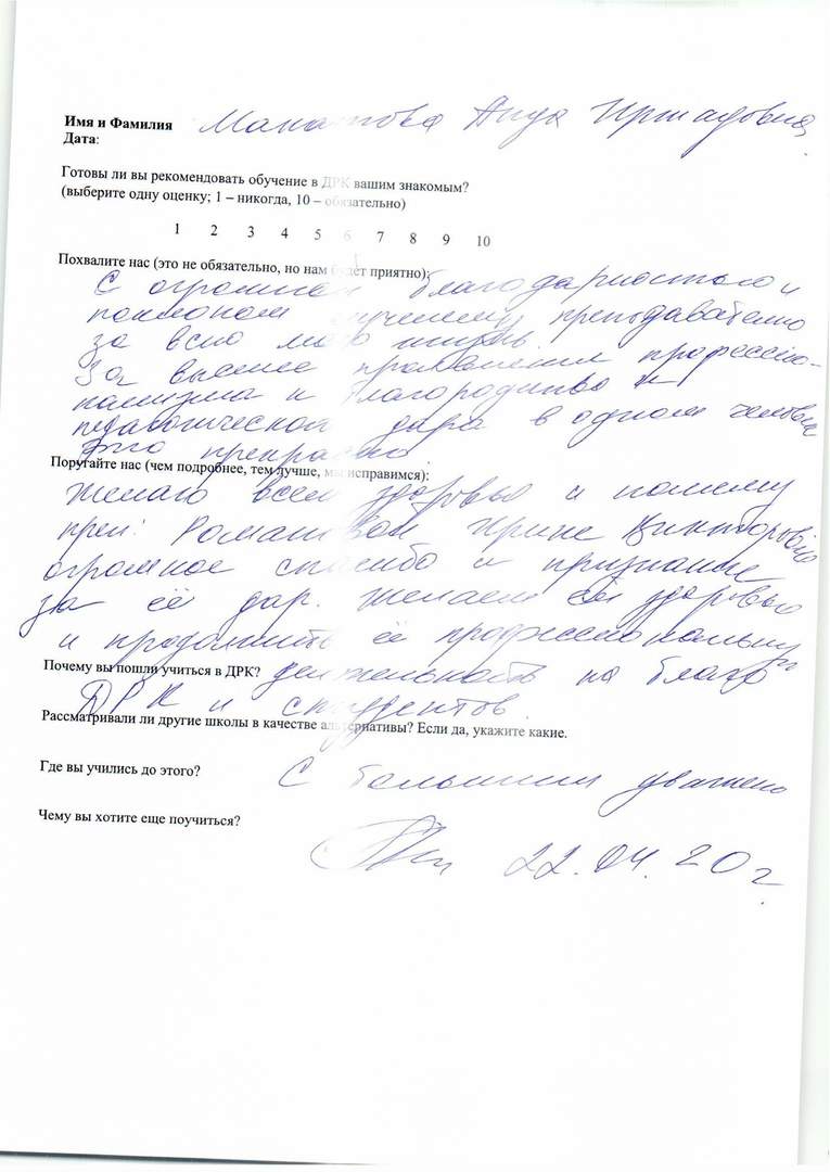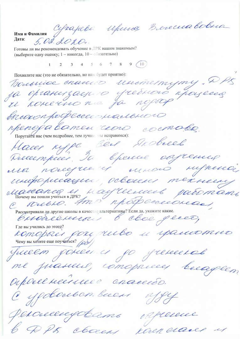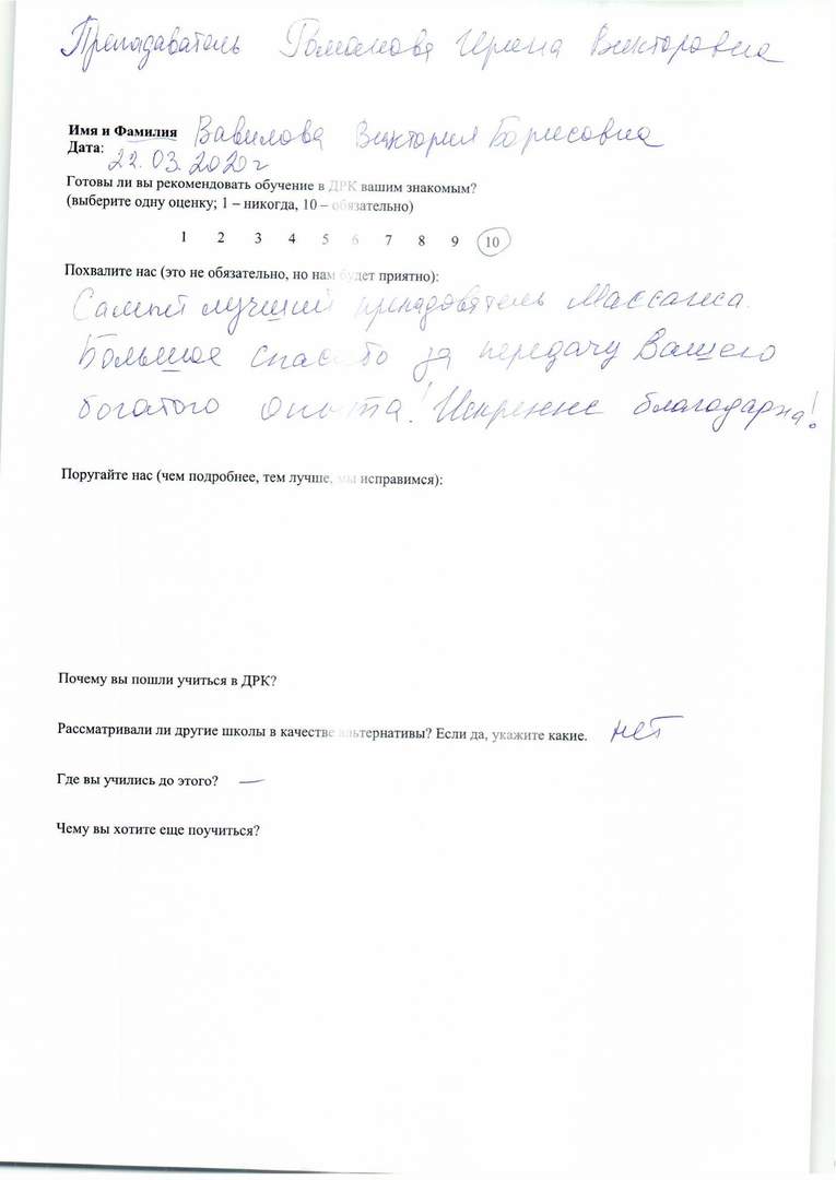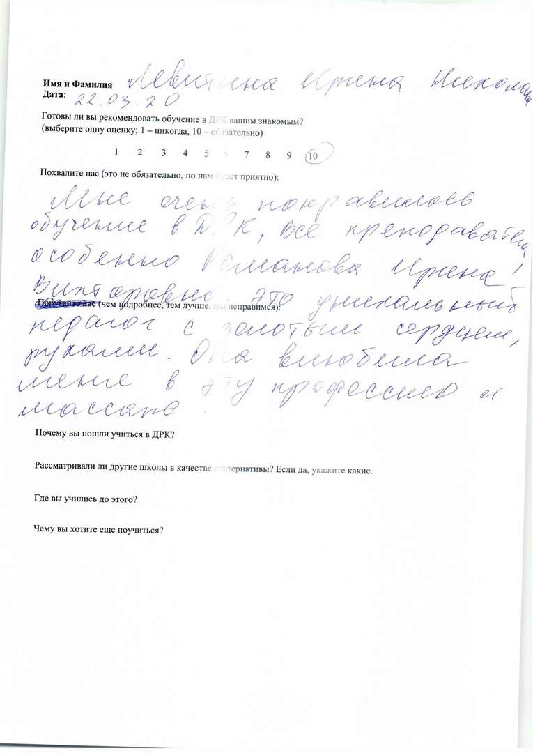 Большое спасибо Институту "ДРК" за организацию учебного процесса и конечно же подбор высокопрофессионального перподавательского состава. Наш курс вел Яковлев Дмитрий. За время обучения мы получили много нужной информации, освоили технику массажа и научились работать с болью. Это профессионал, влюбленный в свое дело, который доходчиво и грамотно умеет донести до учеников те знания, которыми владеет. Огромнейшее спасибо. С удовольствием буду рекомендовать обучение в ДРК своим коллегам.