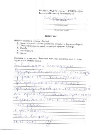 От всей души хочу поблагодарить Никитину Инну Сергеевну(преподаватель) за высокий профессионализм, внимание к студентам и моделям. Производ. практика с Ашибоковой Ф.З.(студент) пролетела как один день. Атмосфера а группе, взаимовыручка и готовность помочь друг другу - все это заслуга преподавателя. Дому Русской Косметики процветания, а сотрудникам всех благ.