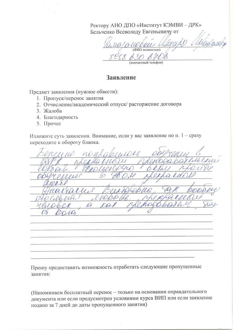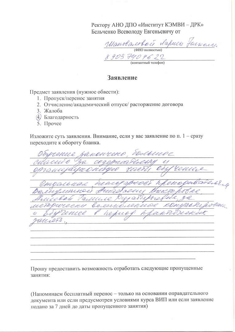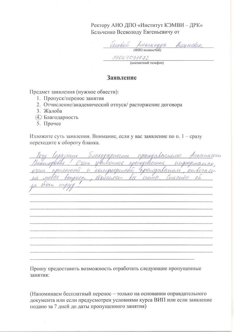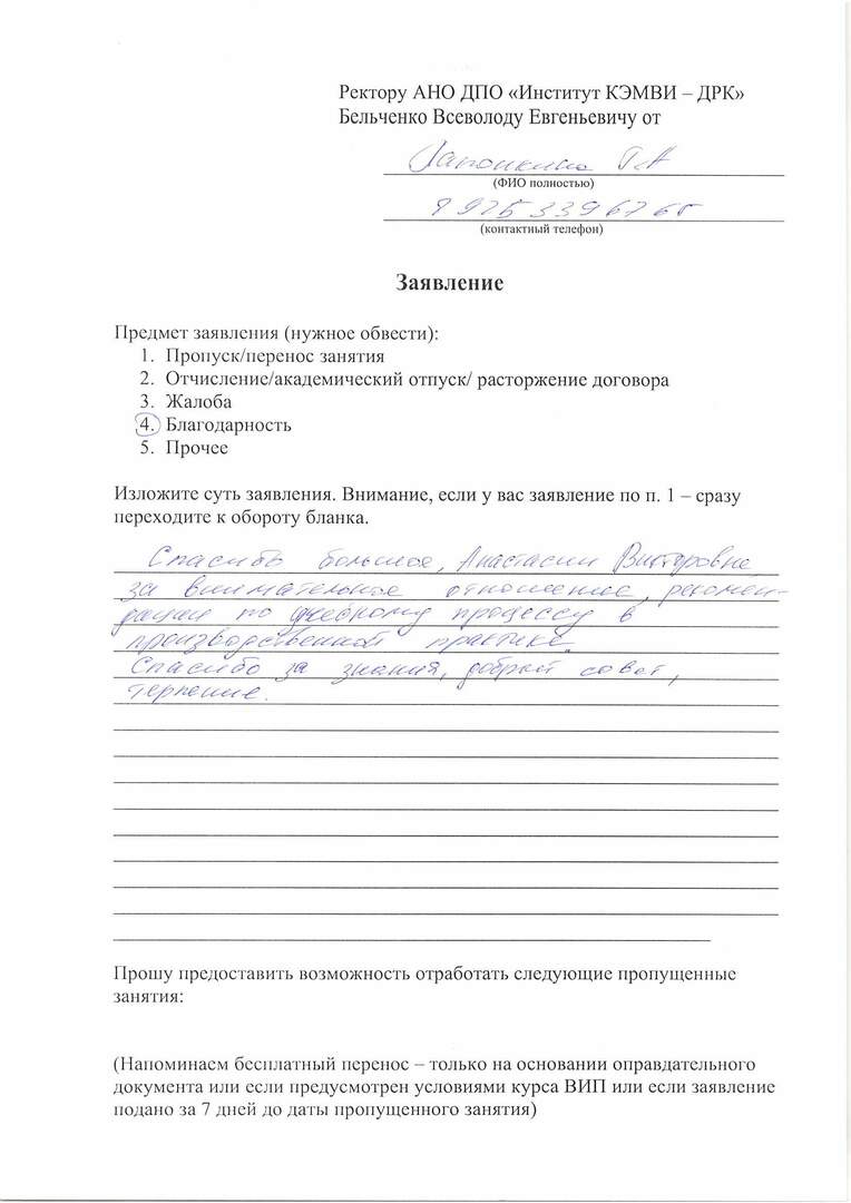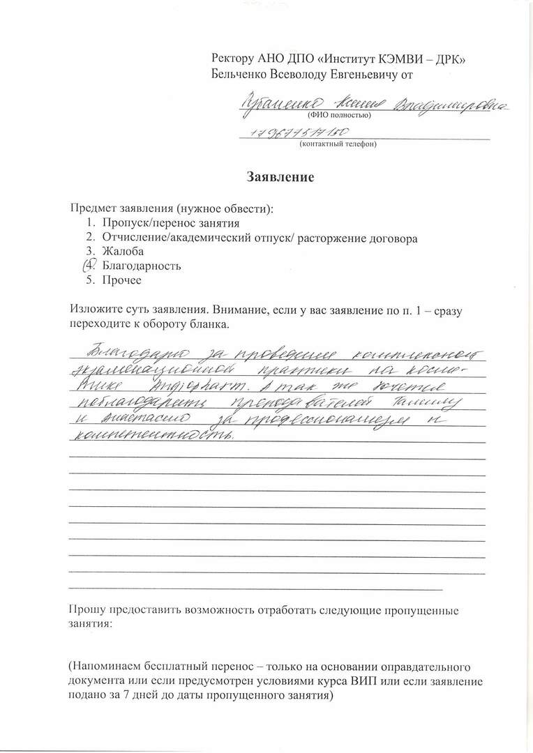 Мяукин В.В. провел качественную лекцию. И практическая часть была очень насыщена. Атмосфера уроков в максимальном комфорте. Получила рекомендации от знакомых, поэтому для обучения выбрала ДРК