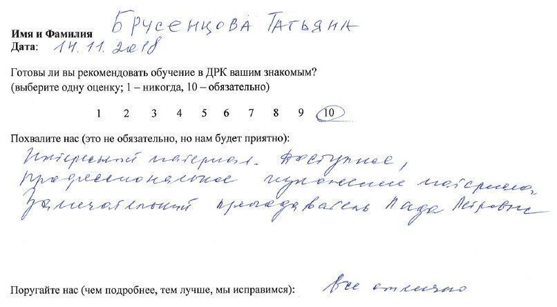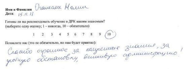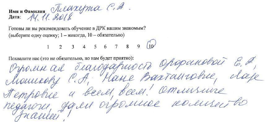 Спасибо огромное за полученные знания, за уютную обстановку, вежливую администрацию