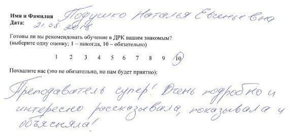 Спасибо большущее Александре Сергеевне!!! Во-первых, преподаватель от Бога!!! Во-вторых, очень добрая, отзывчивая, светлый человек.