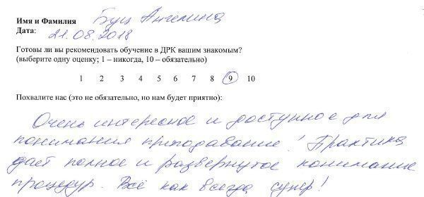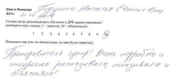Очень хорошие преподаватель, администратор и менеджер. Получила массу удовольствия