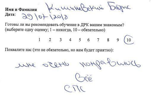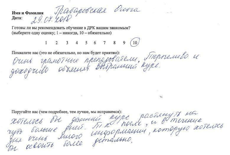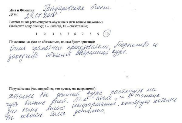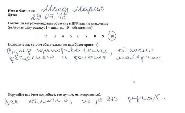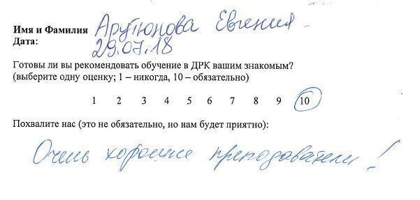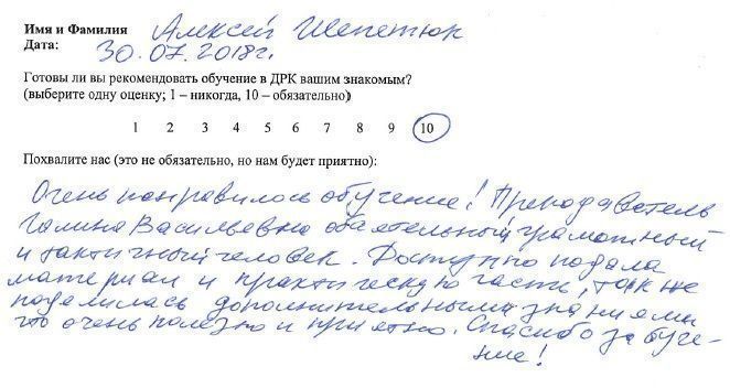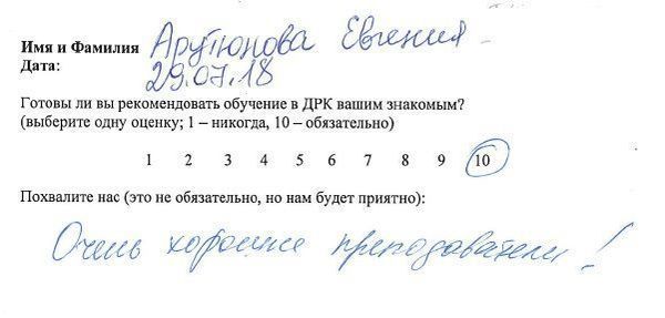 Спасибо большое за занния и умения, полученные на занятиях. Сергей Николаевич и Нана Вахтанговна - отличный преподаватель.