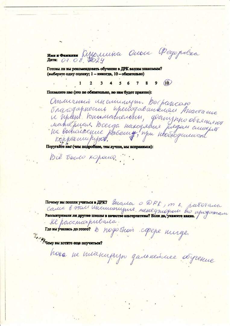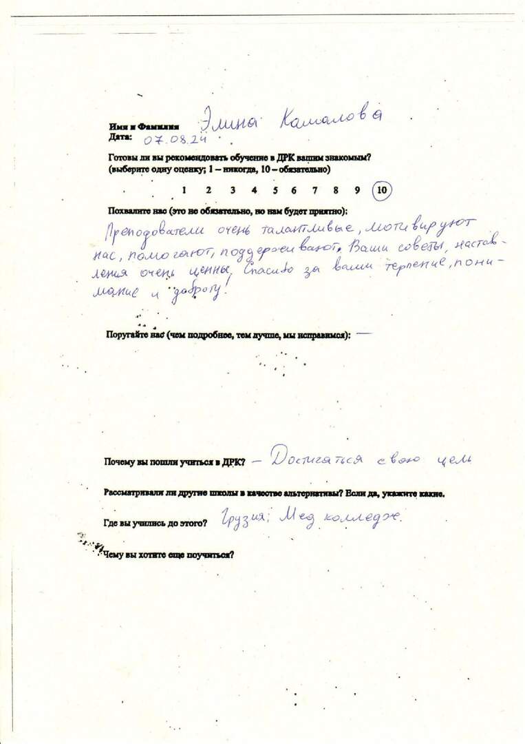 Огромная благодарность институту ДРК и всему педагогическому составу за возможность изучать косметологию и совершенствоваться в этом направлении! Программа насыщена практическими занятиями, преподаватели всё доступно и интересно объясняют. Отдельное спасибо Алиевой Тамиле Худайбердыевне!