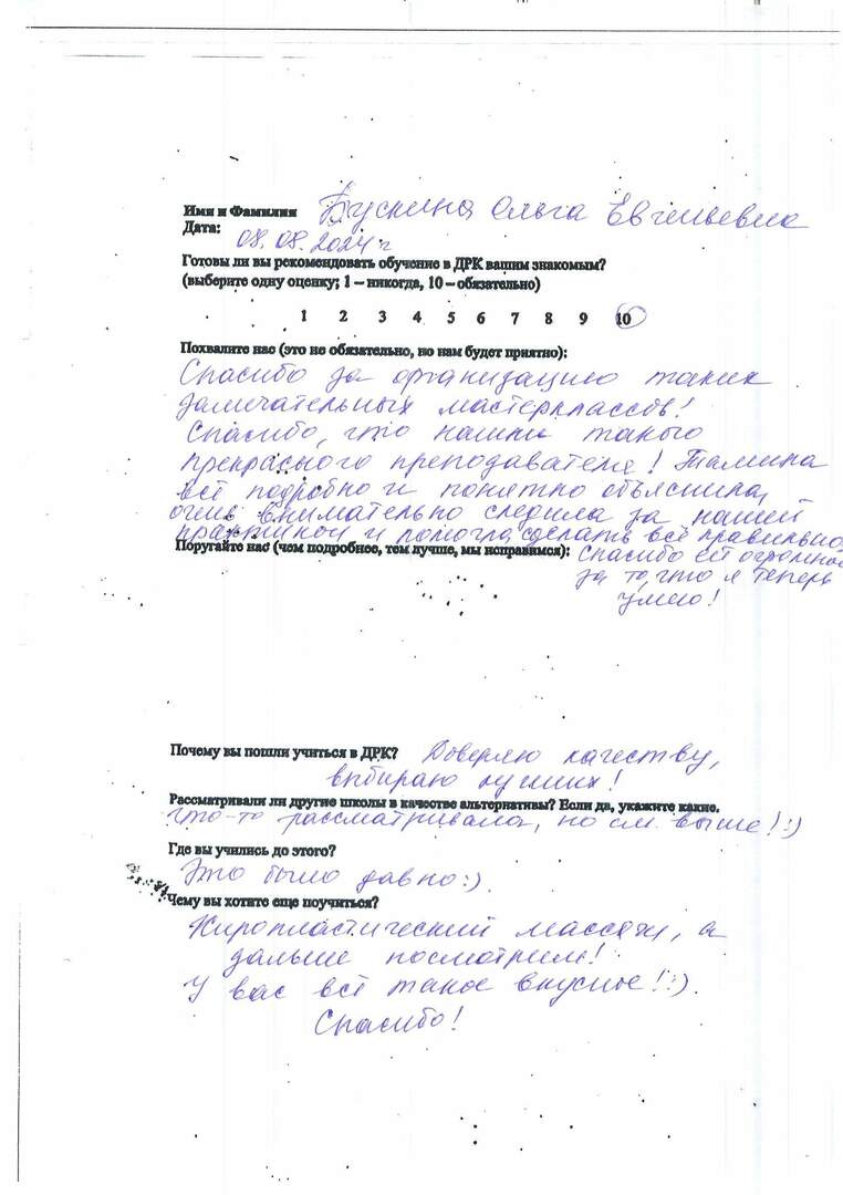 Спасибо за организацию таких замечательных мастер-классов! Спасибо, что нашли такого прекрасного преподавателя! Тамила всё подробно и понятно объяснила, очень внимательно следила за нашей практикой и помогла сделать всё правильно. Спасибо ей огромное за то, что я теперь умею!