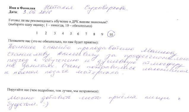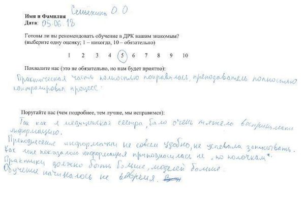 5 баллов Практическая часть полностью понравилась, преподаватель полностью контролировал процесс. Так как я медицинская сестра, было очень тяжело воспринимать информацию. Преподнесение информации не совсем удобно, не успевала записывать. Как мне показалось, информация преподносилась не"по полочкам". Практики должно быть больше, моделей больше. Обучение началось не вовремя.