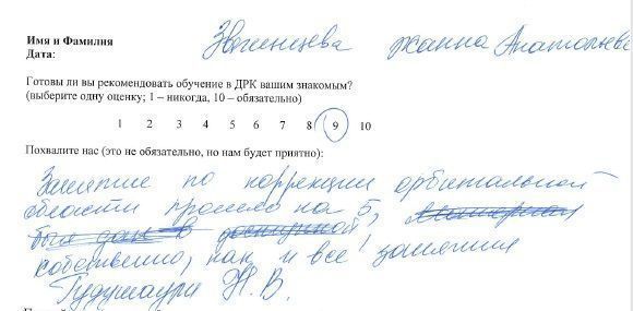 Занятие по коррекции орбитальной области прошло на 5, собственно, как и все занятия Гудушаури Н.В.