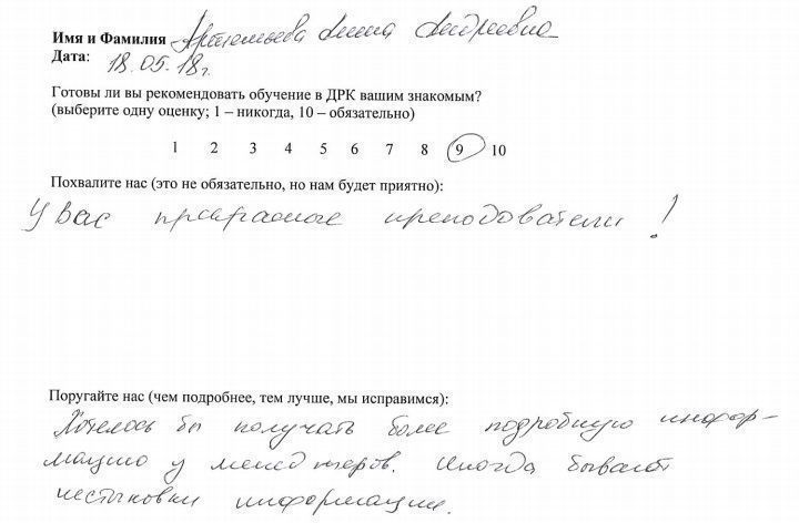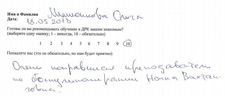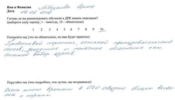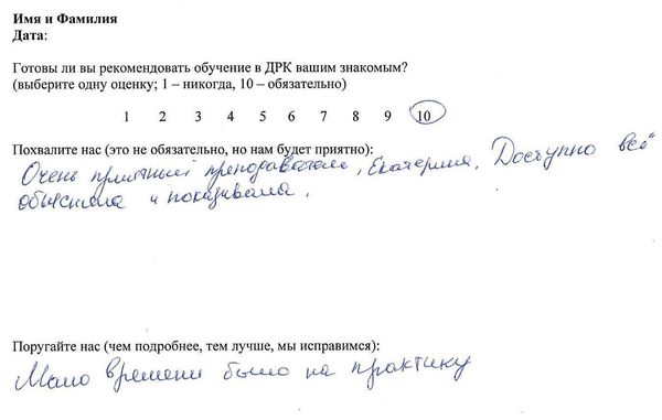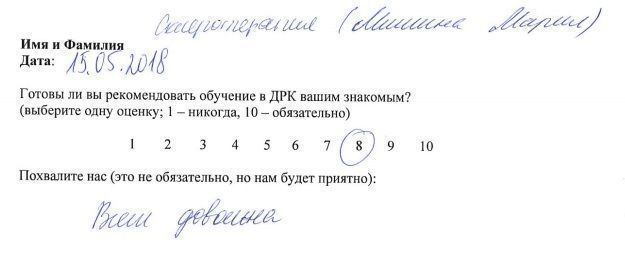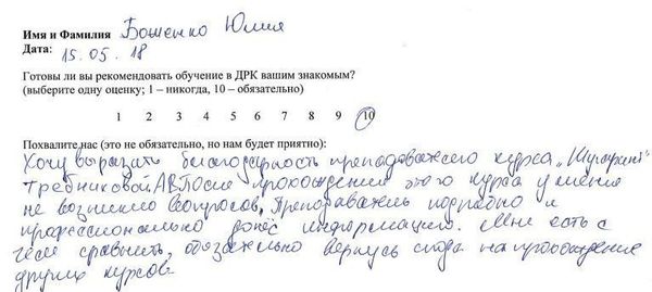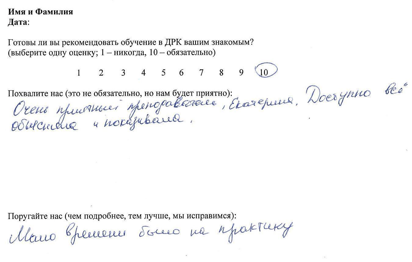 Хочу выразить благодарность преподавателю курса "Шугаринг" Требниковой А.В. После прохождения этого курса у меня не возникло вопросов. Преподаватель подробно и профессионально донес информацию. Мне есть с чем сравнить, обязательно вернусь сюда на прохождение других курсов.